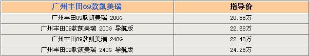 09款凯美瑞G系列车型是在08款基础上升级而来。240G和240G Navi两款车型都增加了VSC车辆稳定性控制系统、TRC牵引力控制系统和泊车雷达等三项装备,分别变为240G豪华(升级)版和240G Navi豪华(升级)版;200G和200G Navi两款车型均增添了泊车雷达,分别变为200G豪华(升级)版和200G Navi豪华(升级)版,而价格均较08款略有下调。