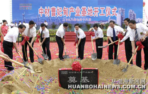 环渤海新闻网消息(记者王琳)“现在我宣布,中材曹妃甸产业基地项目正式开工!”随着省委常委、市委书记赵勇高声宣布,7月18日,中材曹妃甸产业基地项目在曹妃甸工业区开工建设。省委常委、市委书记赵勇,中国中材集团公司总经理谭仲明,省商务厅厅长王志欣,市委副书记、市长陈国鹰,市人大常委会主任张耀华,市政协主席张国栋,市政府副市长辛志纯等共同为项目奠基。