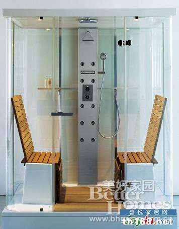 此淋浴房通过触摸屏做出远程控制就可以调节一切,十通道的水流冲洗到身上,可起按摩作用。另外淋浴房里的彩灯设计、芬芳功能和可选声音系统,为你营造一个完美的SPA空间