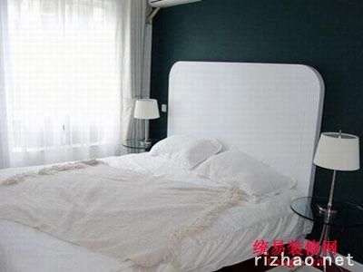 黑色与白色在这个空间得到融合。大面积的黑色墙面突出了白色大床与窗帘的洁净感。床板上大块的空白提供了一个DIY的特色空间。