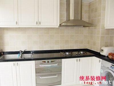 白色系的厨房比较接近简约风格,深浅不一的墙砖看上去很淡雅。