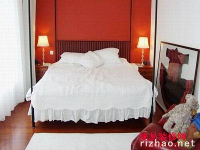 主卧最具中式特色,雅致的四柱床、轻放在墙角的中式画都展现出浓浓的中式韵味。墙面的红色在整个空间中并不显得突兀,反而起到了很好的视觉效果。