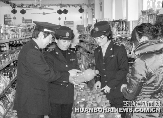 春节将至,唐海县工商局日前开始在全县范围内开展为期一个月的食品安全专项整治,重点检查商场超市、批发户、集贸市场、城乡接合部食品摊点及农村食杂店。图为唐海县工商局工作人员正在某超市检查。记者赵勇摄