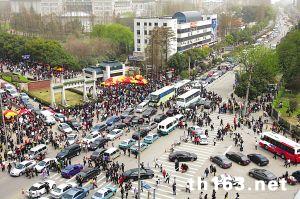 武汉大学校园樱花盛开 10万赏花客流堵塞校门