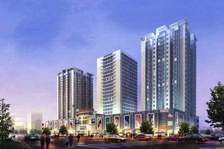 恒硕地产开发建设的先锋领寓、滨海名居、曹妃甸国际商贸城,三个项目总体上是一个整体,根据不同物业区分为公寓、住宅、商铺,投资与自住相得益彰。项目总占地面积117.71亩,总建筑面积16万多平米,是一个集居住、办公、休闲、娱乐于一体的大型的综合性社区。整个社区由中间的商业步行街隔开,商业街以西是商贸城及公寓办公楼,以东是住宅区,共1000多户居民,为商贸城的后续经营打下了坚实的基础。商业街在中间又起到一个连接的作用,从小区到商贸城可以自由来回穿梭。步行街全长150米,宽30米,是一条真正的步行街,路两头用建筑小品作为阻隔,只能人行,在保障整条街干净整洁的同时也保障了购物顾客的安全,在步行街中间设有建筑雕塑、休闲座椅等,保障了顾客良好的购物环境。步行街两侧是独立的精品店铺,预留了统一的装修位,以保证整条街的美观大方。