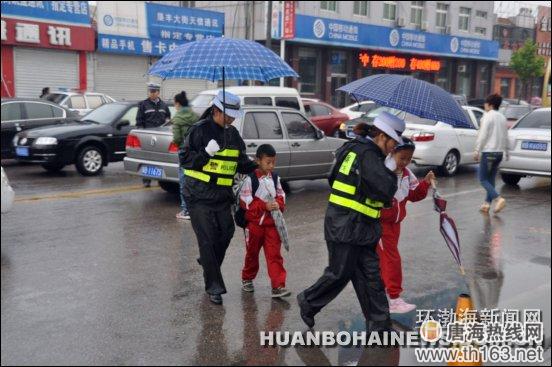 连日来,唐海地区普降中到大雨。为加强校园周边交通秩序,保障学生上下学期间的道路安全,唐海交警大队女子中队冒雨坚持站好“护学岗”,在重点时段、地段上岗执勤,指挥疏导交通,护送引导学生安全通行。同时,警花们还加强对机动车超速、违法停放、不按规定让行等交通违法行为的查处力度,确保了校园周边道路安全畅通。