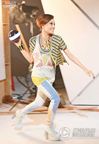 这次拍摄广告祖儿破纪录一分钟换了三十套衣服,速度无人能及,因为导演利用立体投影效果,将不同造型投射到容祖儿身上,迅速换了多套超立体服饰,容祖儿笑说:“我变成立3D换衣玩偶,这个技术公司应考虑用在下次的演唱会上面,节省了好多换衣服的时间,还可以唱多几首歌。”此外,忙于为城电新剧拍摄的刘浩龙,昨日被网民影到在街头跟赵学而做对手戏。