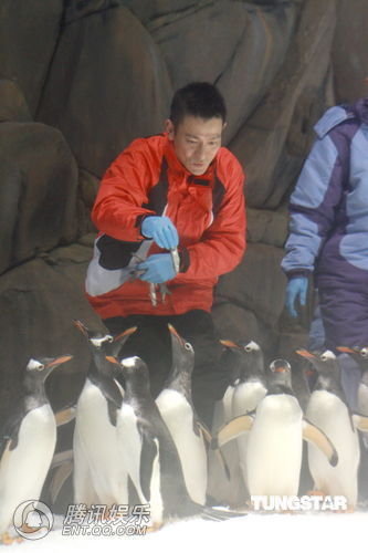 大会更请刘德华进入冰极世界,亲身喂饲企鹅。记者问到刘德华有杂志拍到女儿的出生证明,刘德华表示已向有关政府部门查问,其它的问题不想再回应。
