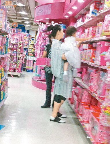 看完电动车,邱淑贞抱着女儿去挑选其他玩具,沈星对粉红色的玩具特别喜欢,不时伸手去触摸玩具,邱淑贞向店员询问几句后,店员即为她取货到柜枱,然后邱淑贞向女儿轻声地说:“妈妈去给钱啦!”之后便将女儿交给同行女友人,尾随的沈星全程望着新玩具,似怕被人抢走,相当搞笑。