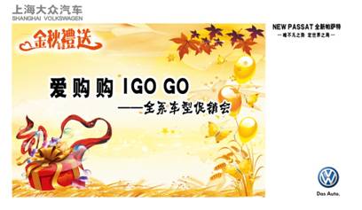 9月1日-2日开发区上海大众打造购车专场。金秋购车爱购购全系价格给您惊喜,更有原厂全车贴膜、IPAD3等豪礼相送。