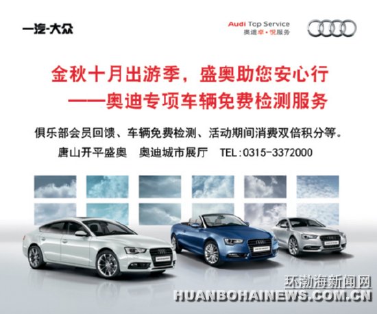 2012中秋、国庆双节相连,即将到来,很多车主都会选择在假期自驾出游,为了让车主出游能够玩的开心、行的安心,9月10日——10月20日,唐山盛奥特别开展奥迪专项车辆免费检测服务活动。