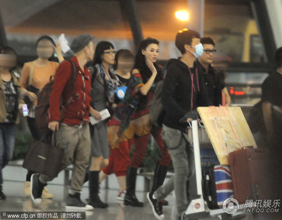 之后张柏芝在粉丝的簇拥之下进入安检区,张柏芝多次转身与粉丝打招呼道别。