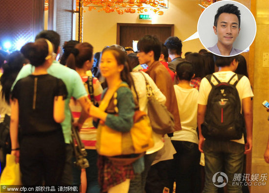 粉丝们把刘恺威团团围住索要签名,无法得到签名的粉丝只好高举相机拍摄偶像,一直把偶像护送到门口粉丝们才一一散去。