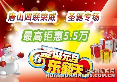 在国外:皑皑白雪,暖暖火炉。。。。在中国:张灯结彩,异彩纷呈。。。。在这里,灿烂笑容,优质服务。12月21日--25日唐山四联荣威圣诞专场,年度促销。荣威350.荣威550.荣威750.荣威950.荣威W5.最高钜惠5.5万