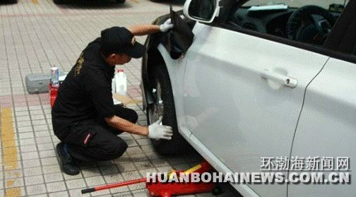 宅捷修服务人员正在检查车胎情况