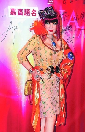 前晚出席的女艺人纷纷比拼性感,当中以宫雪花最出奇制胜。宫雪花以红头橙身亮相抢镜,她透露造型花了两天时间构思,头上蝴蝶结参考Hello Kitty,价值6000多元,而颈链则是名牌配自己设计的宝石,价值逾百万。被问到会否担心太抢镜,她说:“抢到当然想,可惜抢不到青春呢!惟有眼湿湿坐在台下。生不逢时,如果我年轻时来参选一定拿冠军。”