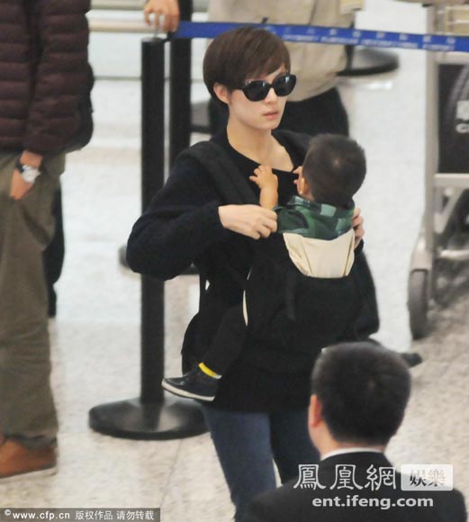 近日,孙俪一身黑装戴着墨镜出现在上海虹桥机场。当天,孙俪将宝贝儿子背在身前,一路上都小心翼翼的不让身旁的旅客撞到自己。期间,孙俪还逗儿子开心捏他小脸,而宝宝则拉着妈妈衣领“还击”相当可爱。孙俪出了机场后径直走向三楼室外,原来外公早已驾车在此等候,一家人快速上车离开机场。