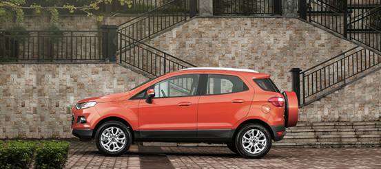 由车窗和车门折线勾勒出的具有雕塑感的车身腰线,勾画出了一道快速延伸至车尾的优美弧线,凸显出这辆城市SUV的独特的动感身姿。按照空气动力学设计的外观可以有效提升燃油经济性;而宽大、短促的引擎盖,倾斜的A柱,黑色的B柱与侧车窗形成一体的设计传达出动感的设计理念,力量感十足。另一个标志性的设计就是装在侧开式尾门上的备胎——这传达出了全新福特翼搏的实用性以及它所倡导的那种冒险精神。