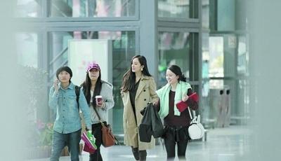 杨幂由三名女助理贴身伺候 天气热脱风衣(图)