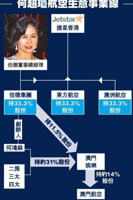 搜狐娱乐讯据香港媒体报道,赌王千金何超琼持有的信德集团斥资逾五亿元入股捷星香港,试图挑战雄霸香港的国泰航空,但掌握内幕的航空业人士透露,相关人员持反对发牌,认为廉航对香港经济贡献不大,何超琼涉足前景不明的航空业生意,这回随时押错注。