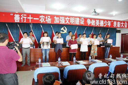 6月18号上午,这场“善行十一农场,加强文明建设,争做美德少年”主题系列活动表彰仪式在农场大会议室举行,为32名“爱国星”、“诚信星”、“知礼星”、“进取星”美德少年,和9名“责任星”教师,以及14名在“我的中国梦——中华经典诵读会、红色手抄报”活动中的获奖选手颁发了荣誉证书,进一步引导广大学生更加刻苦学习,积极上进,鼓励广大教职员工努力工作,为农场的教育事业发展贡献力量。