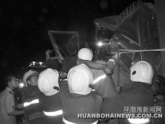 深夜货车追尾司机被困 消防官兵破拆救人(图)