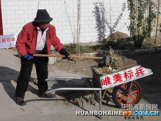 环渤海新闻网消息(丁喜兵 杨文海摄) 今年以来,曹妃甸区三农场以“打造美丽乡村、提升农工群众生活品质”为目标,积极开展了以“从我做起,建设美丽乡村”为主题的评选活动,极大地调动了群众参与农村面貌大提升活动的积极性。图为兴港村群众徐建祥近日推着自己获得的“维美标兵”小推车,义务清理街道上的垃圾。