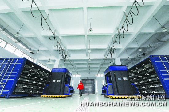 1月24日,一名工作人员在刚刚建成的唐山曹妃甸电动汽车充换站换电区域巡视。日前,由唐山供电公司投资2132万元建设的河北首座电动汽车充换电站在曹妃甸建成,预计春节后投入使用。