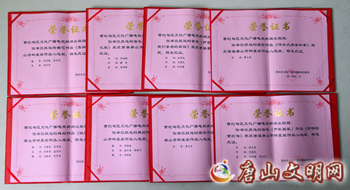 曹妃甸区选送的16部音乐、舞蹈、摄影、小品作品荣获唐山市首届群星奖入选作品奖。
