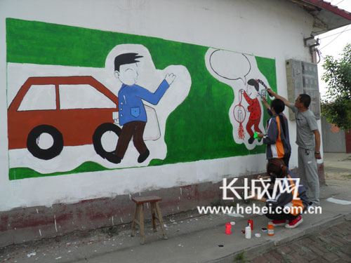 高考后孩子们更乐于参与实践活动,用手中的画笔装饰家乡。段永亮 摄