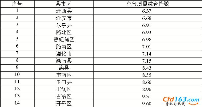环渤海新闻网消息 (记者李响 通讯员赵丽辉)10月1日,市环保局公布全市各县(市)区9月份空气质量排名。公布数据显示,迁西县、迁安市和乐亭县分别排在前三位。
