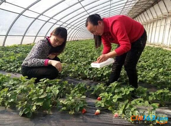 草莓丰收 民悦生态园冬天里的一点红