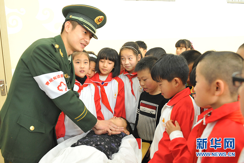 24日,河北边防总队曹妃甸边检站官兵来到驻地小学,向学校师生们开展了一堂急救知识讲座。