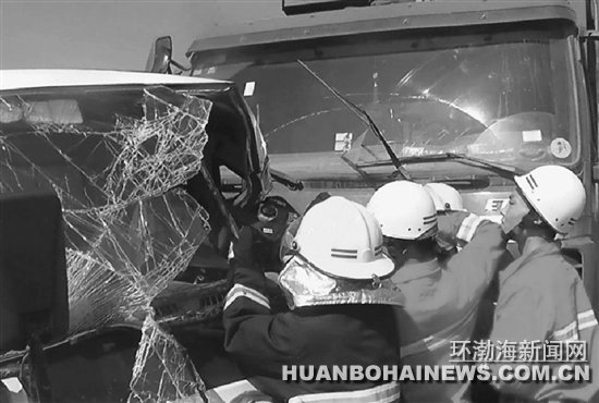 货车与面包车相撞司机被困 消防曹妃甸中队急救援