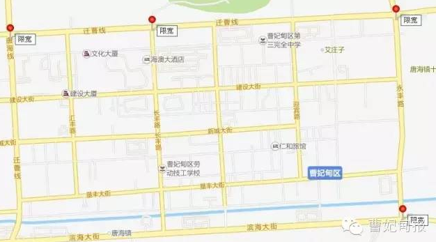 为有效解决大型货车夜间穿行城区,交警支队即日将在永丰路与北外环路南口、唐海路与北外环路南口、长丰路与北环路南口、滨海大街与永丰路东口设置临时管制性限宽设施,限宽240CM,以解决大货车进城问题,望有车单位及消防医疗抢险等部门,选择其它通行路线出入城区。特此公告全城四大限宽地点图解