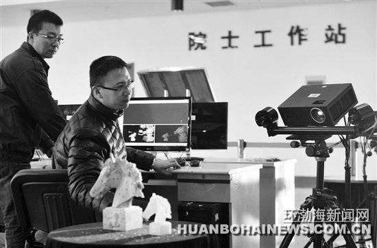 3D打印前,专家在对打印物体进行三维扫描。
