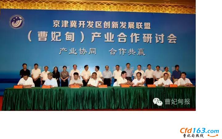 研讨会上,在与会领导和嘉宾的共同见证下,北京中科晶电集成电路、北京百信仓储物流、北京类钻石纳米材料生产基地等6个项目与曹妃甸现场签约,其中,京津冀开发区创新发展联盟与曹妃甸签约合作共建园区。
