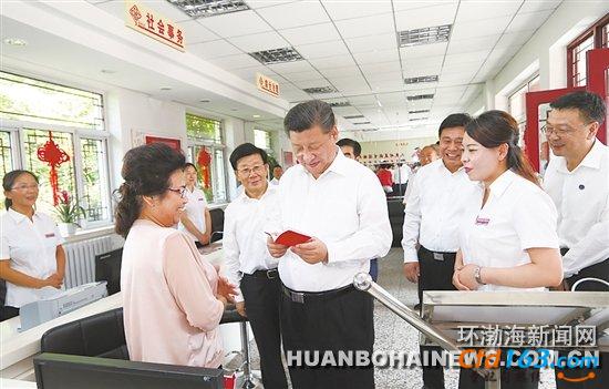 习近平在唐山市祥富里社区服务中心政务服务大厅同办事群众交流。新华社记者 兰红光 摄