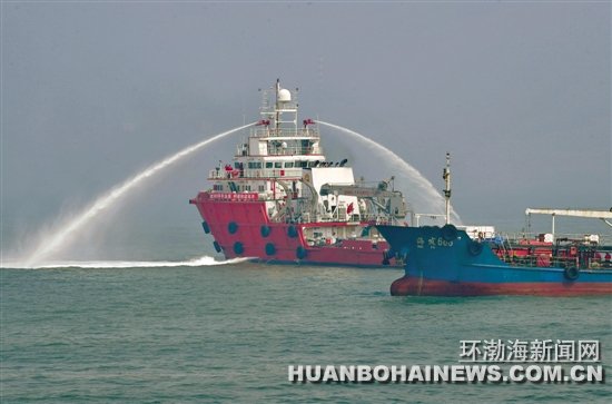 船舶在曹妃甸海域进行溢油应急演习(图)