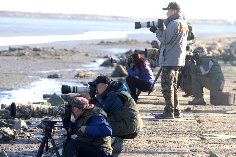 这片滩涂海岸线长约240公里,地处东亚——澳大利亚候鸟迁徙通道的中段,每年有70多种、近百万只候鸟在此停歇。下午落潮期,在天津滨海新区海边,志愿者们看到上千只遗鸥、黑嘴鸥等水鸟在觅食,露出水面的滩涂是清一色黑色的淤泥,与北戴河海滨的沙滩迥然不同。天津市著名野保志愿者王建民介绍说:这种泥滩正是大自然赋予这片海滨最宝贵的财富。这些淤泥有一米多深,营养丰富,是大量微生物和底栖生物的温床,成就了这里候鸟补给站的美名。“相关单位一定要千方百计保护好这片泥滩。”王建民说。(燕赵都市报冀东版 记者 刘光昱)