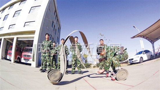 图为微型消防站消防员正在进行技能测评。记者 赵亮 摄